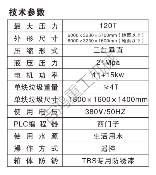 JHZG3120型垂直三缸四柱垃圾壓縮中轉(zhuǎn)站